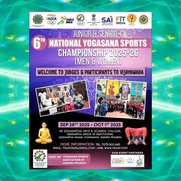 Yogasana Bharat and Yogasana Sports Association of Andhra Pradesh (YSAAP) Proudly Presents 6th Junior and Senior C National Yogasana Sports Championship 2025-2026. September 28 - October 1st, 2025. Watch Live from PB Siddartha Arts and Science College, Siddartha Nagar, Vijayawada, Andhra Pradesh.